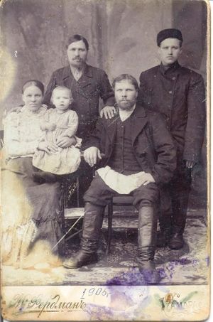 На фото Семьянов Николай Васильевич сидит в центре, слева - его жена Арина Васильевна Семьянова, его малолетняя дочь Мария Николаевна Семьянова, рядом дядя Аким Васильевич и Емельян Балягинов