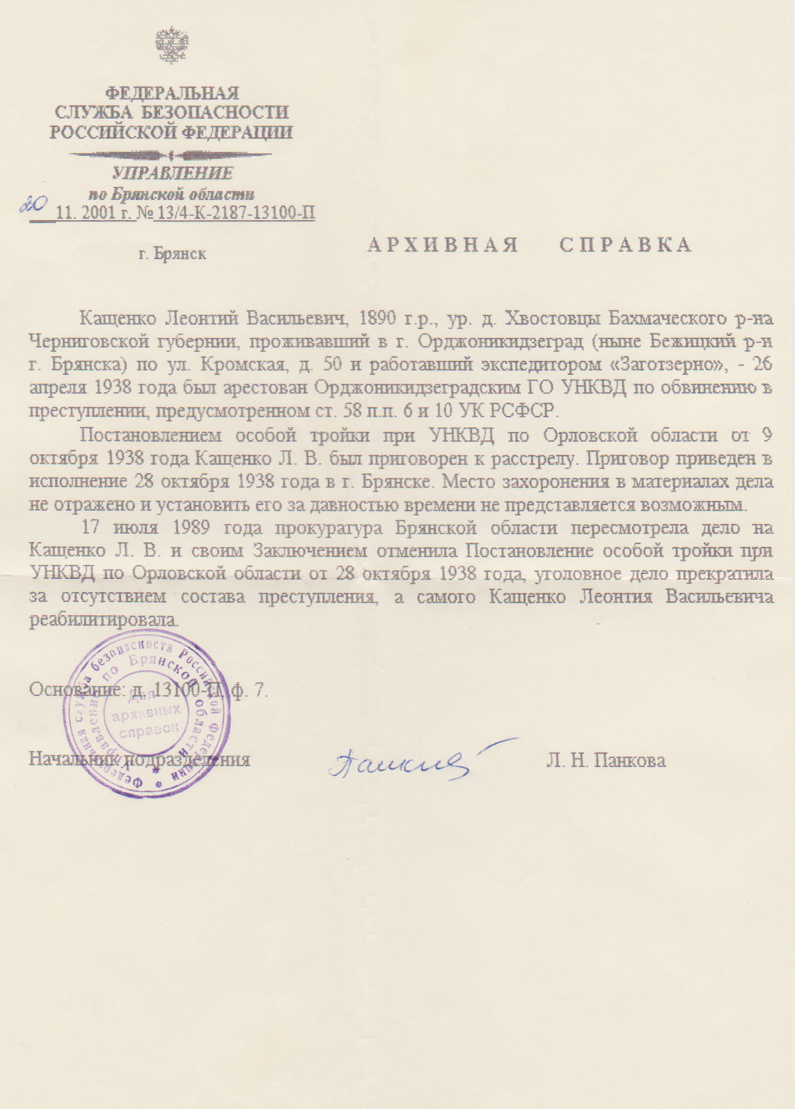 Файл:Кащенко Леонтий Васильевич (1890) Архивная справка.jpg