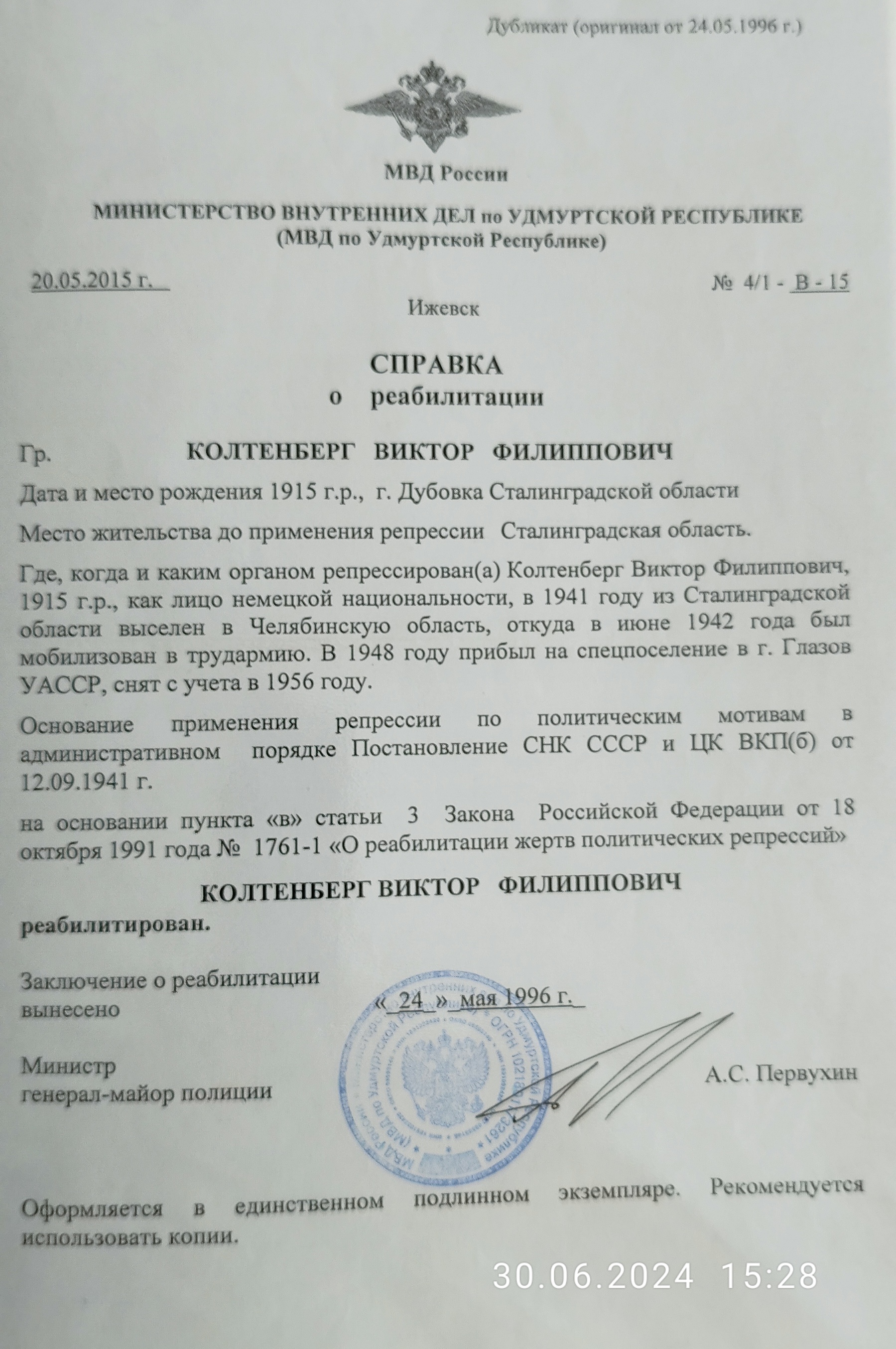 Файл:Колтенберг Виктор Филиппович (1915) справка.jpg