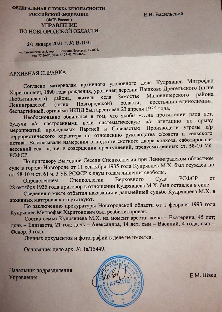 Файл:Кудрявцев Митрофан Харитонович (1890) архивная справка.jpg