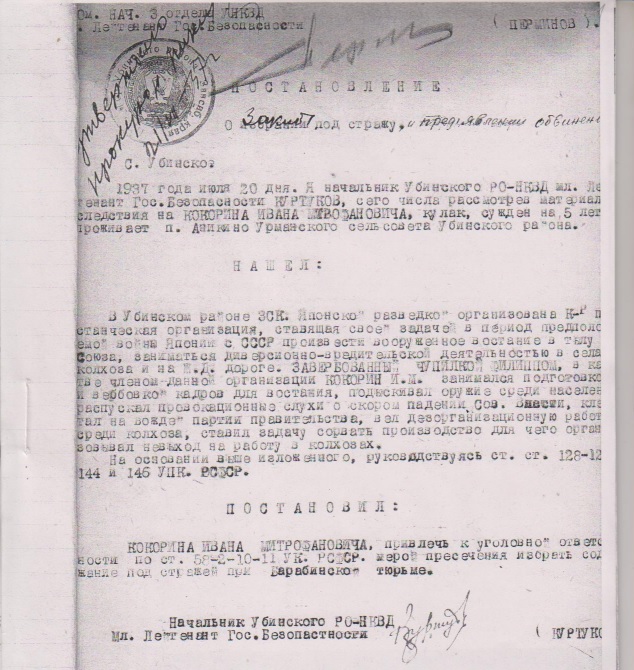 Файл:Постановление, Кокорин Иван Митрофанович.jpg