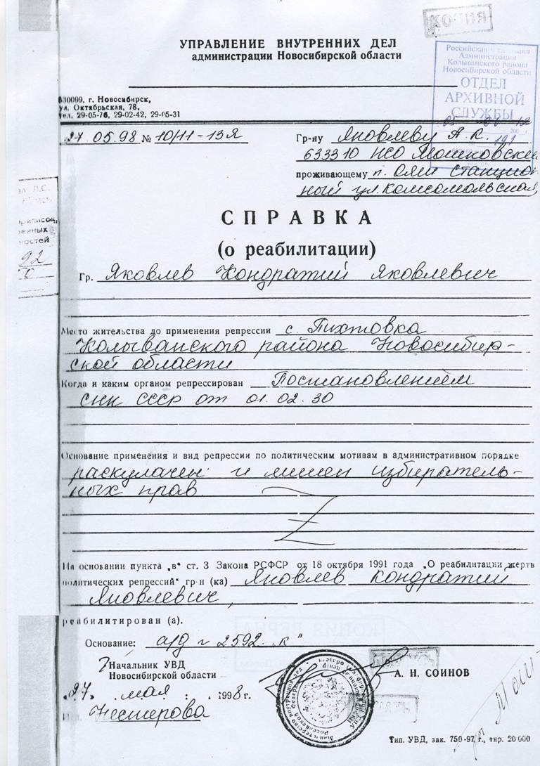 Файл:Яковлев к.я., справка о реабилитации.jpg