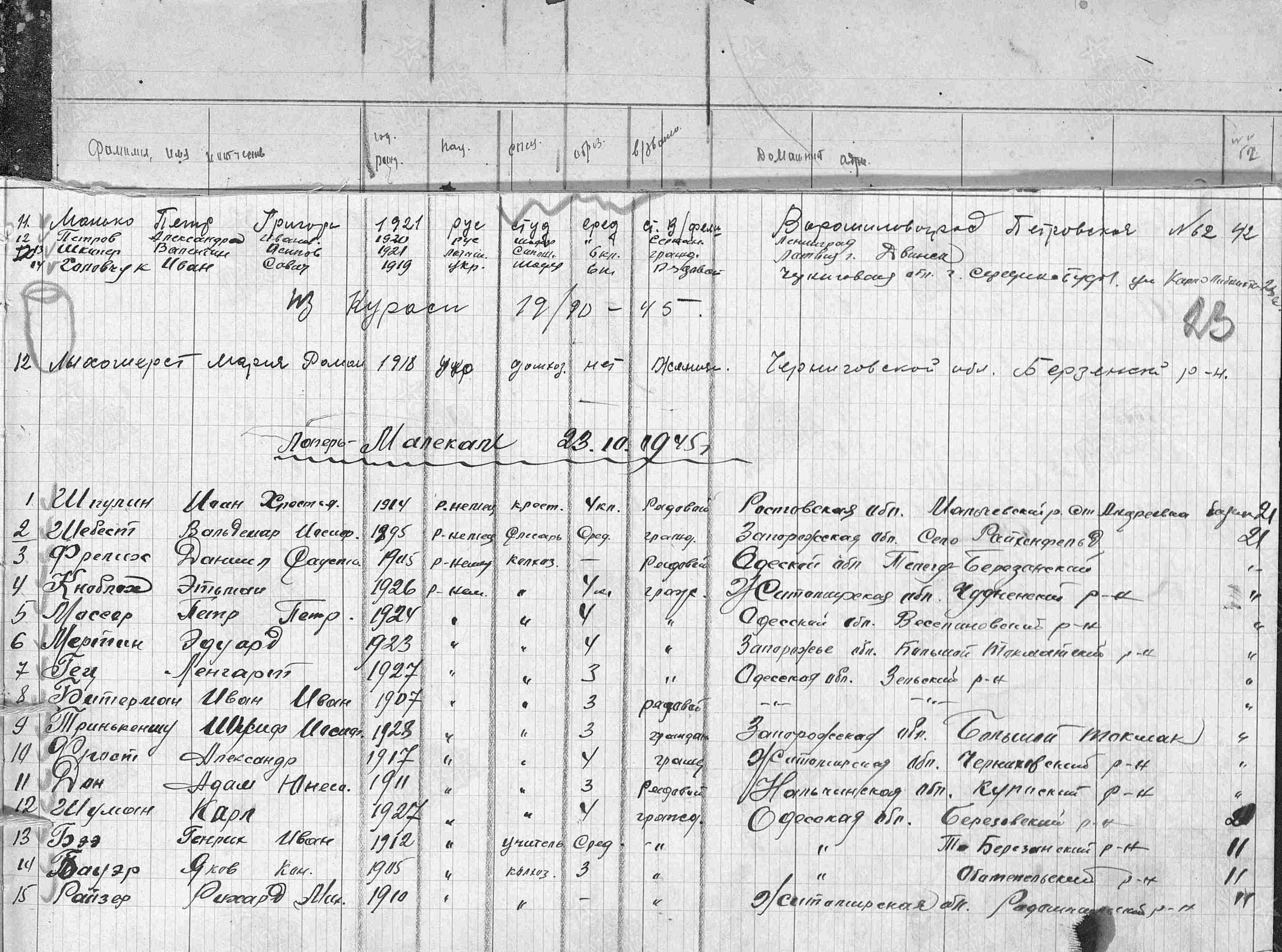 - Массер Петр Петрович (1924)