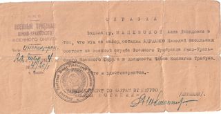 Справка о месте службы, 20 января 1944 года