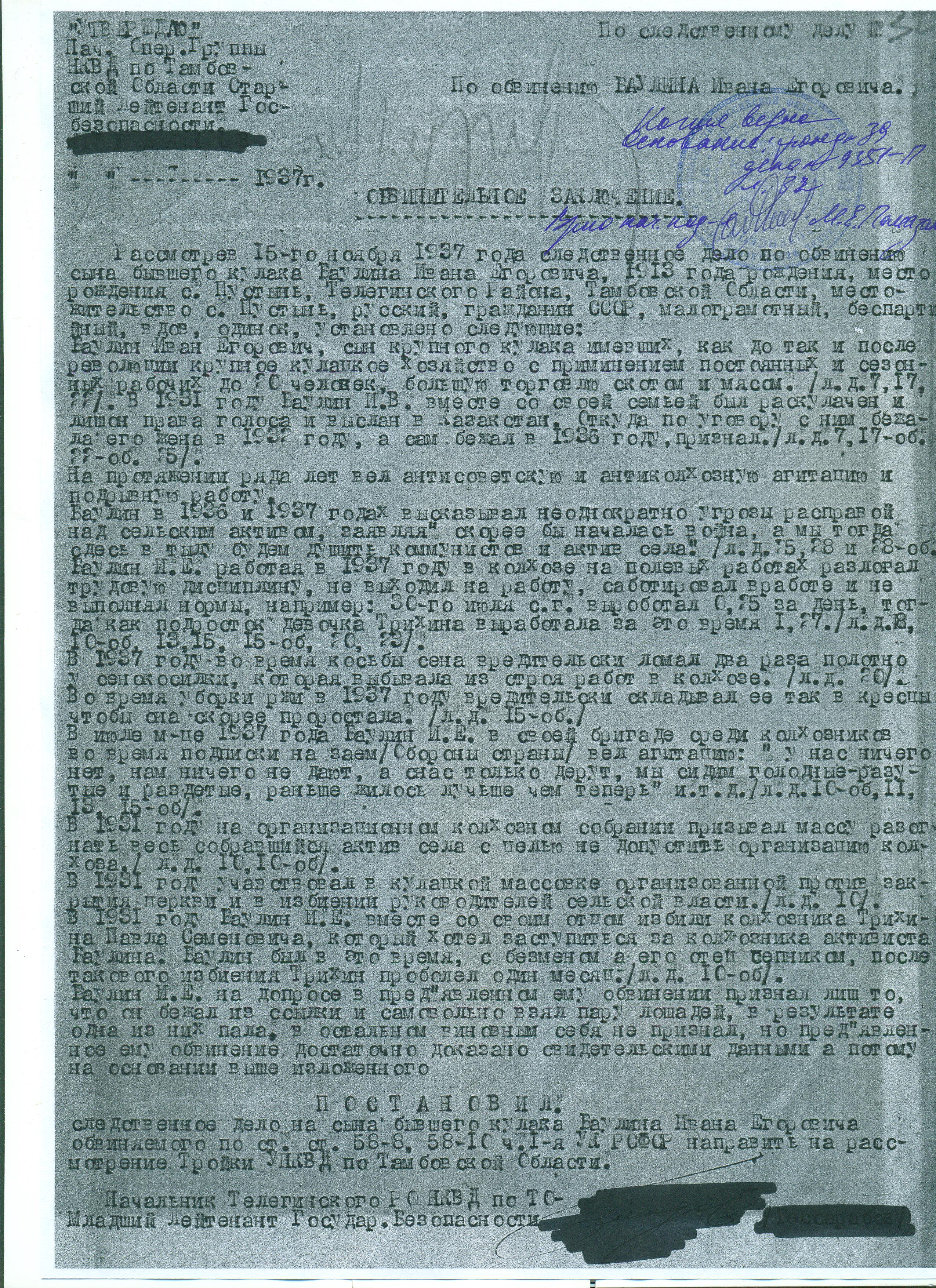 Архивное уголовное дело № 9351-П в отношении Баулина Ивана Егоровича, страница 19