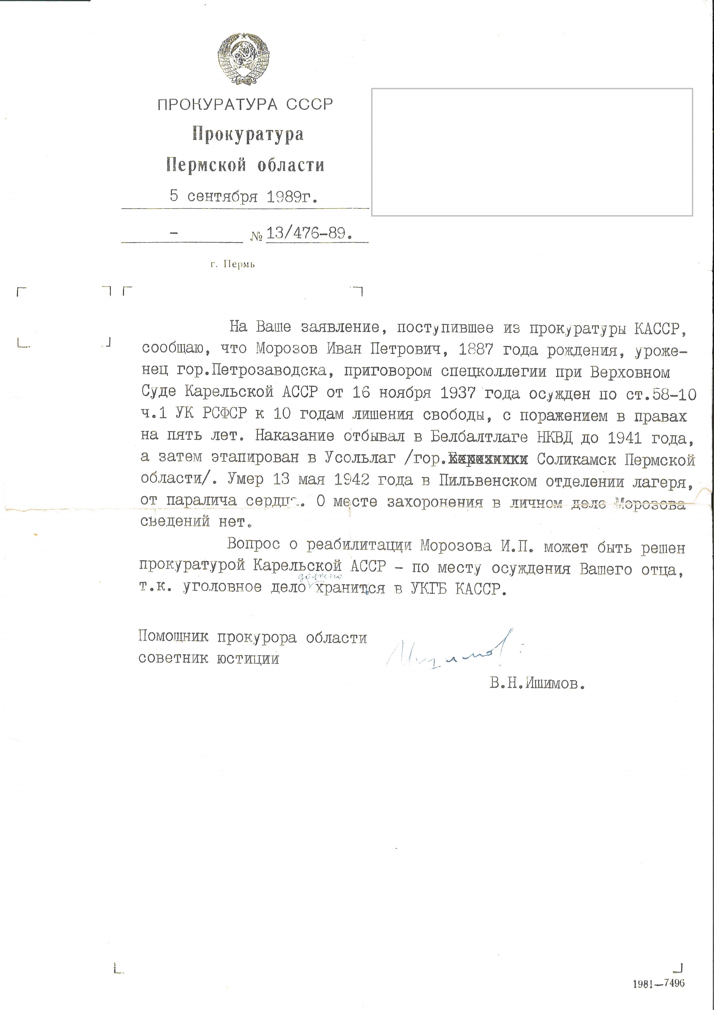 письмо от КГБ Карельской АССР