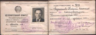 Удостоверение главного госарбитра Калининградской области при исполкоме Калининградского облсовета депутатов