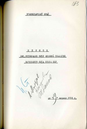 - Список лиц, подлежащих суду Военной коллегии Верховного суда Союза ССР (Краснодарский край)