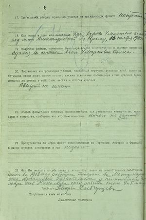 - Где и кем арестован: при сдаче 4 Марковского полка под с. Александровским