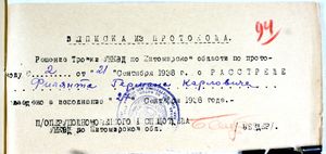 | + | |подпись к фотографии=Выписка из протокола о расстреле | ||