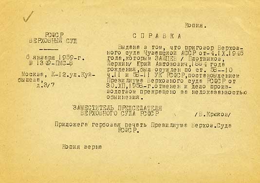 Файл:Справка о реабилитации, Зайцев Ю.А..jpg