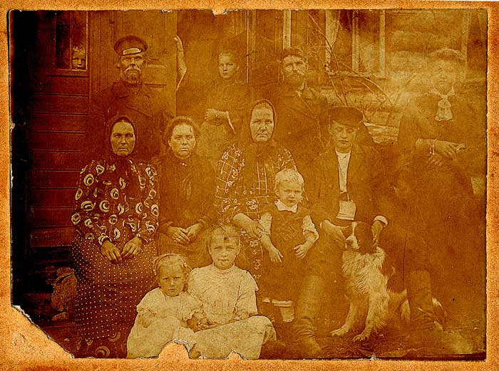 Семья Тимофея Васильевича (стоит сзади в центре). Толя выглядывает из окна слева.