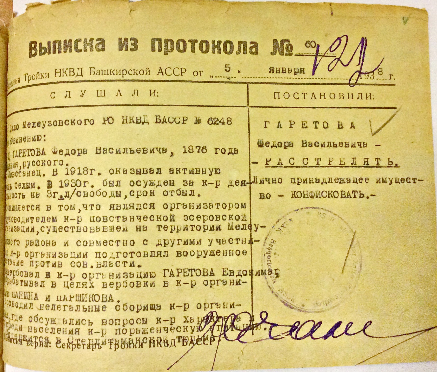 Файл:Гаретов Ф выписка из протокола тройки.JPG