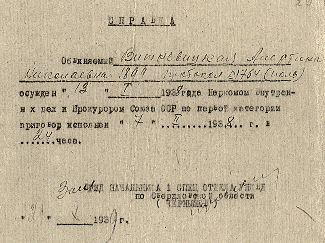 Файл:Справка о приговоре ВМН Вишневецкой А.Н..jpg