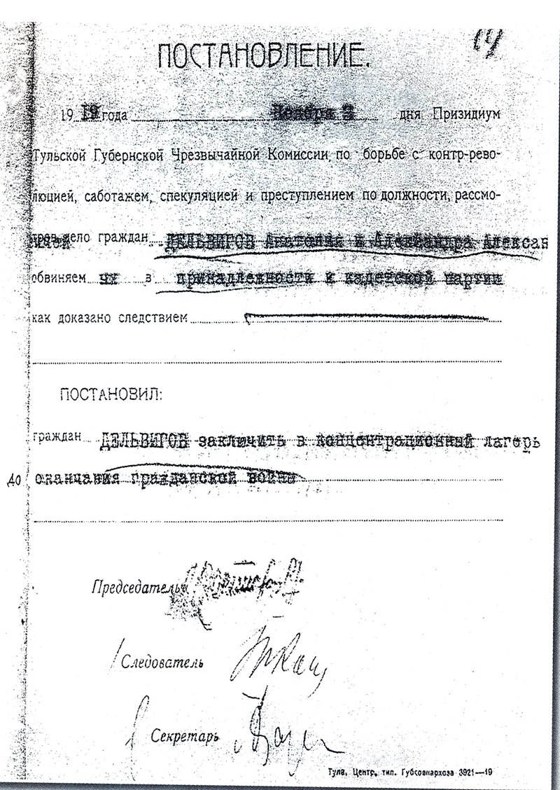 Файл:Постановление Тульской ГубЧК о заключении.jpg