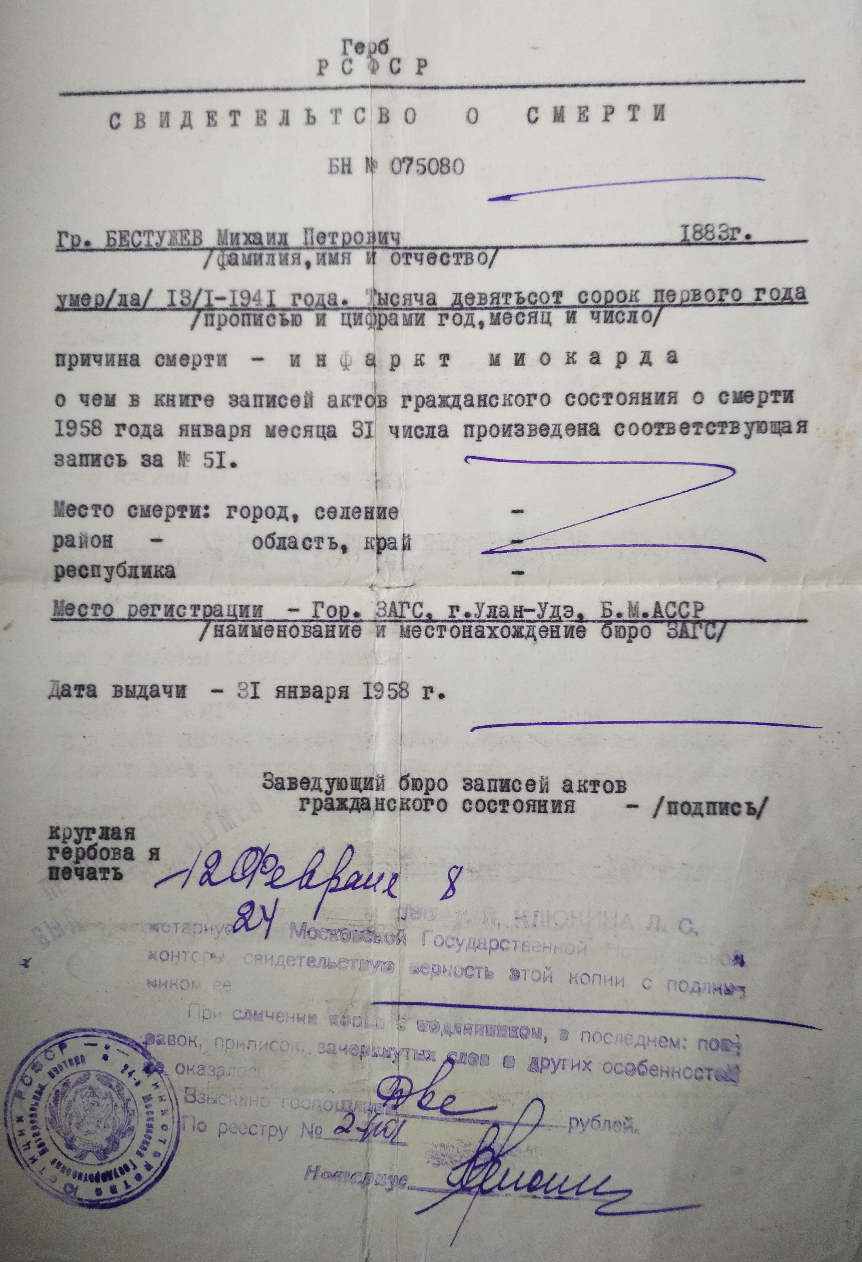 Файл:Справка о смерти Бестужев М.П..jpg