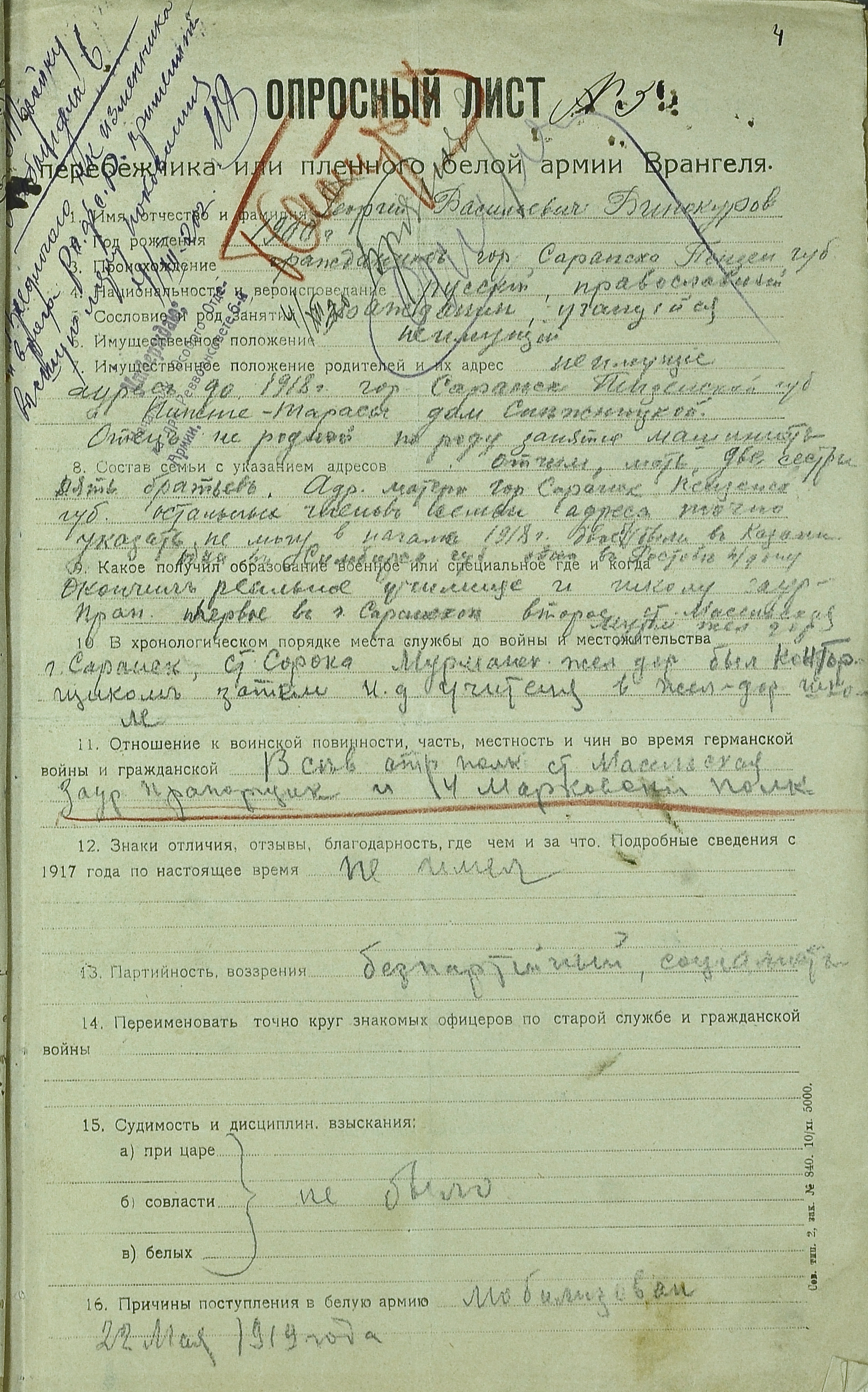 Опросный лист из дела