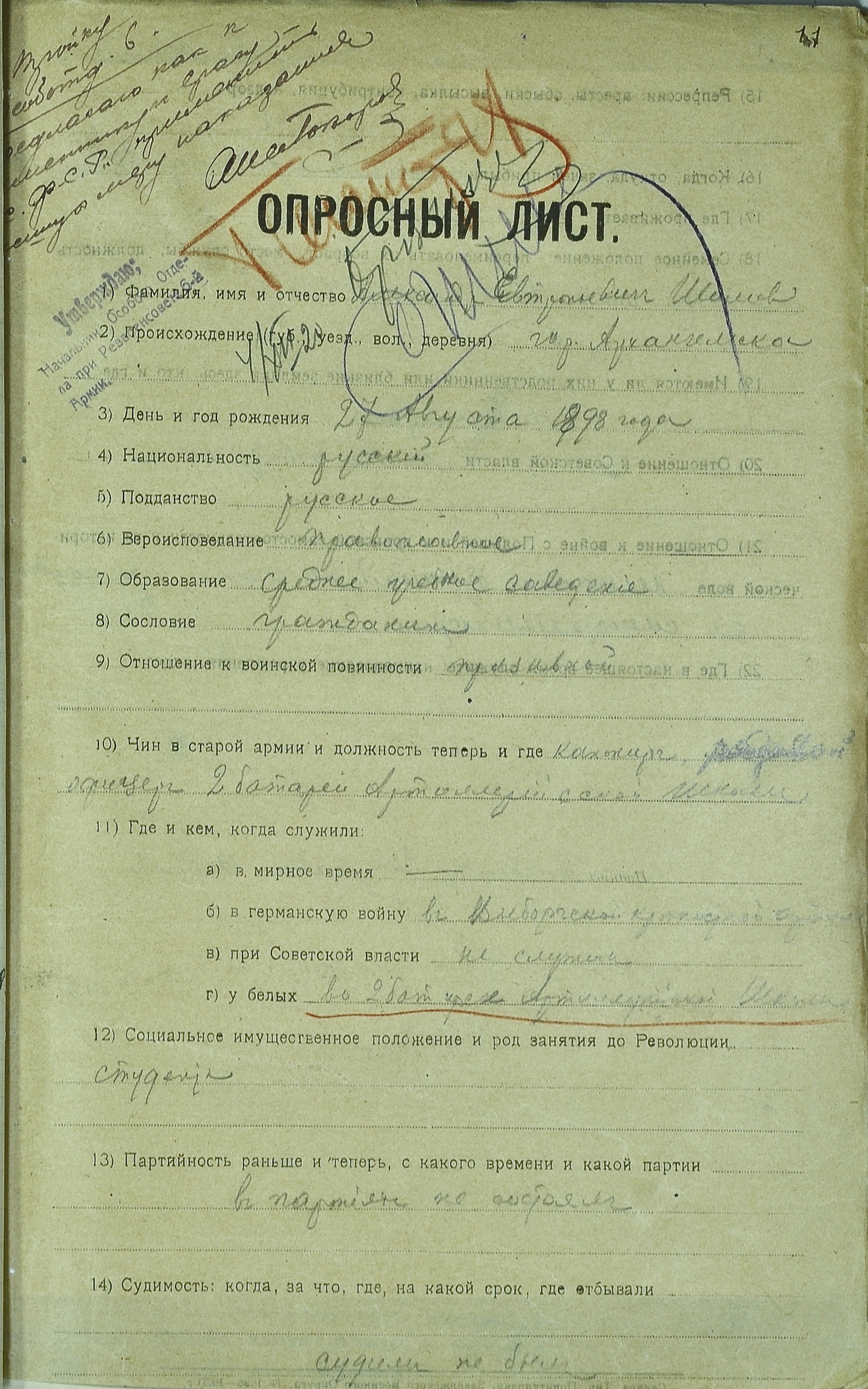 Опросный лист