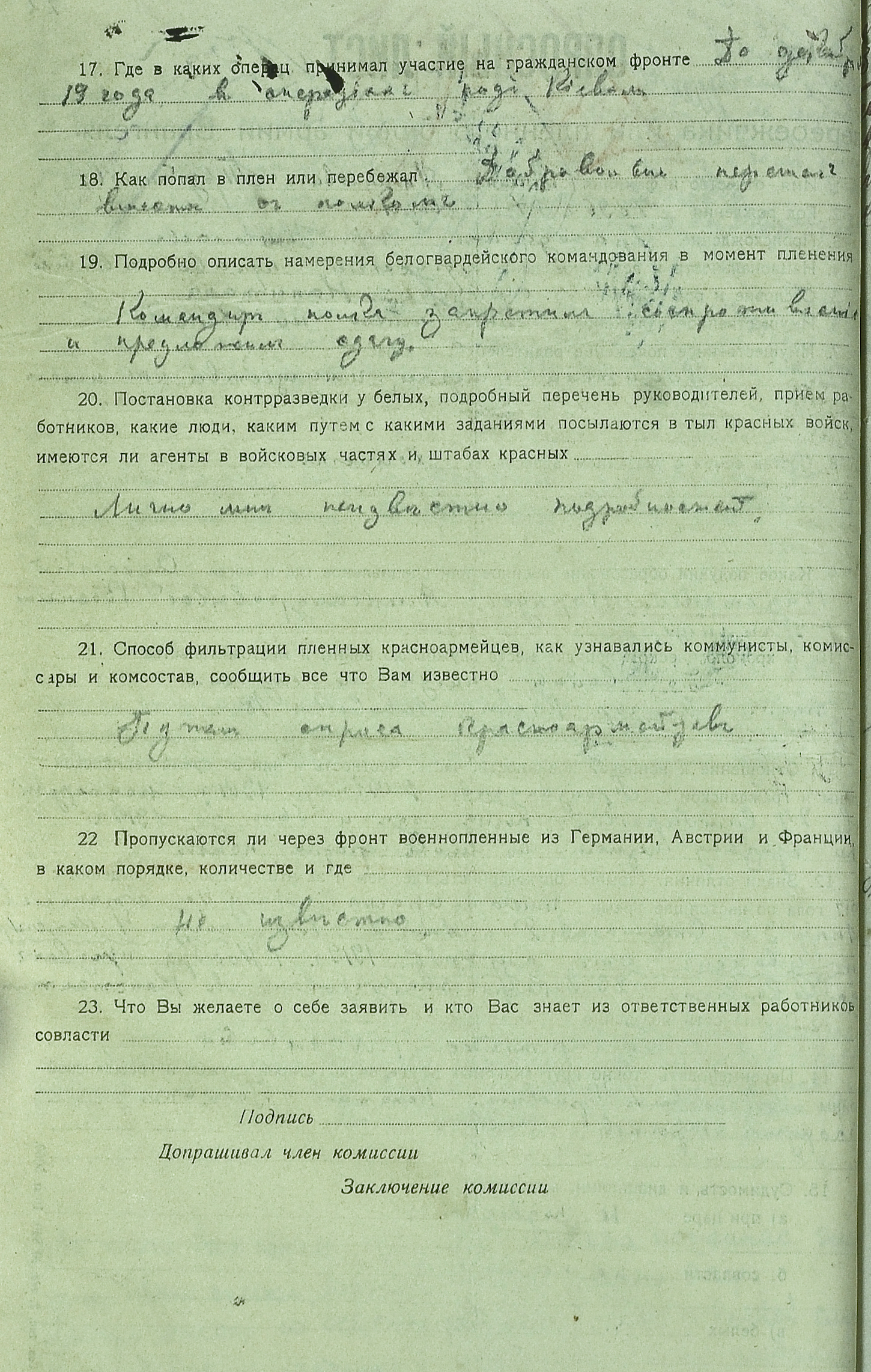 Опросный лист. Архив СБУ. Дело № 5144, л.22 (оборот)