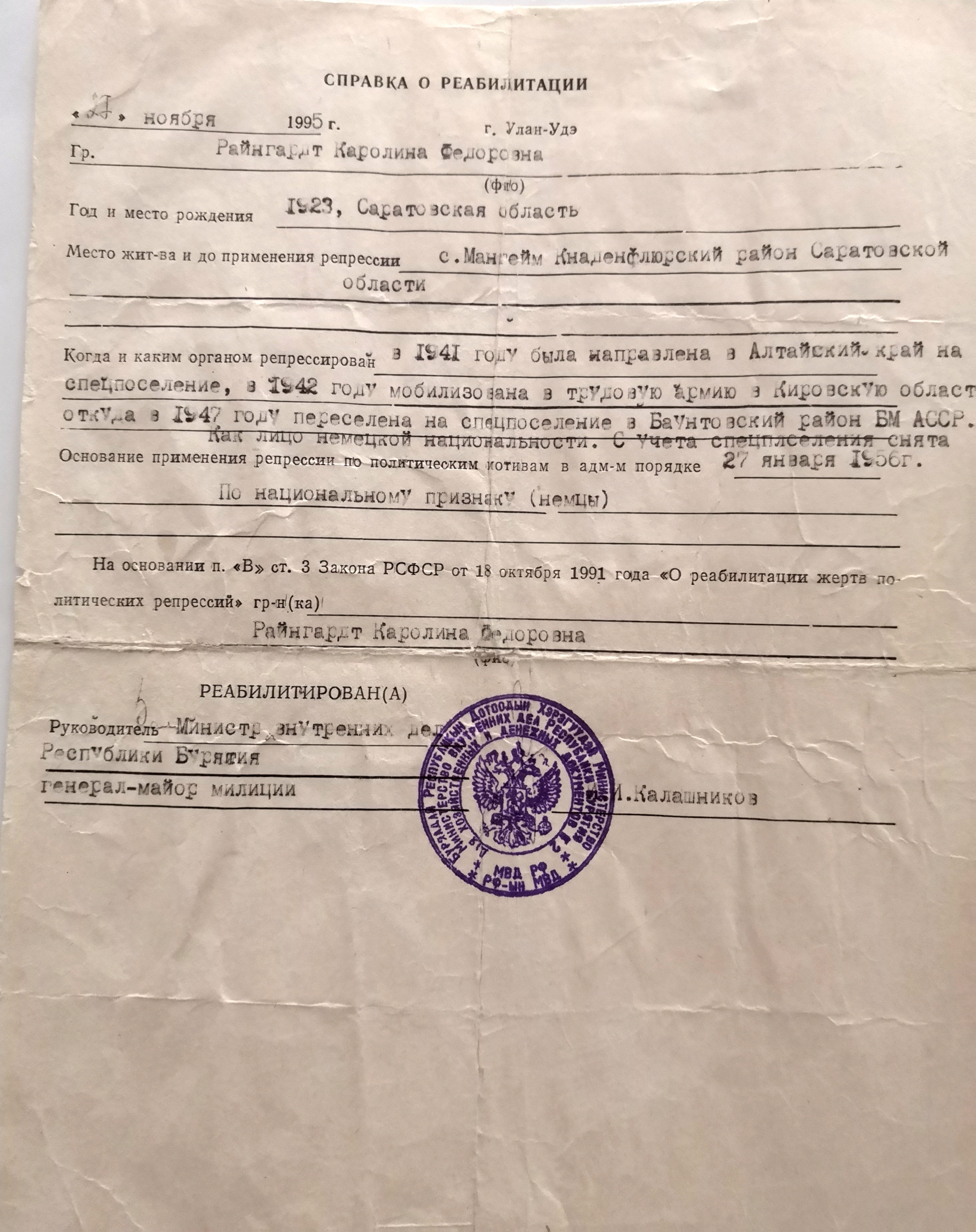 Файл:Справка о реабилитации - Рейнгардт Каролина .jpg
