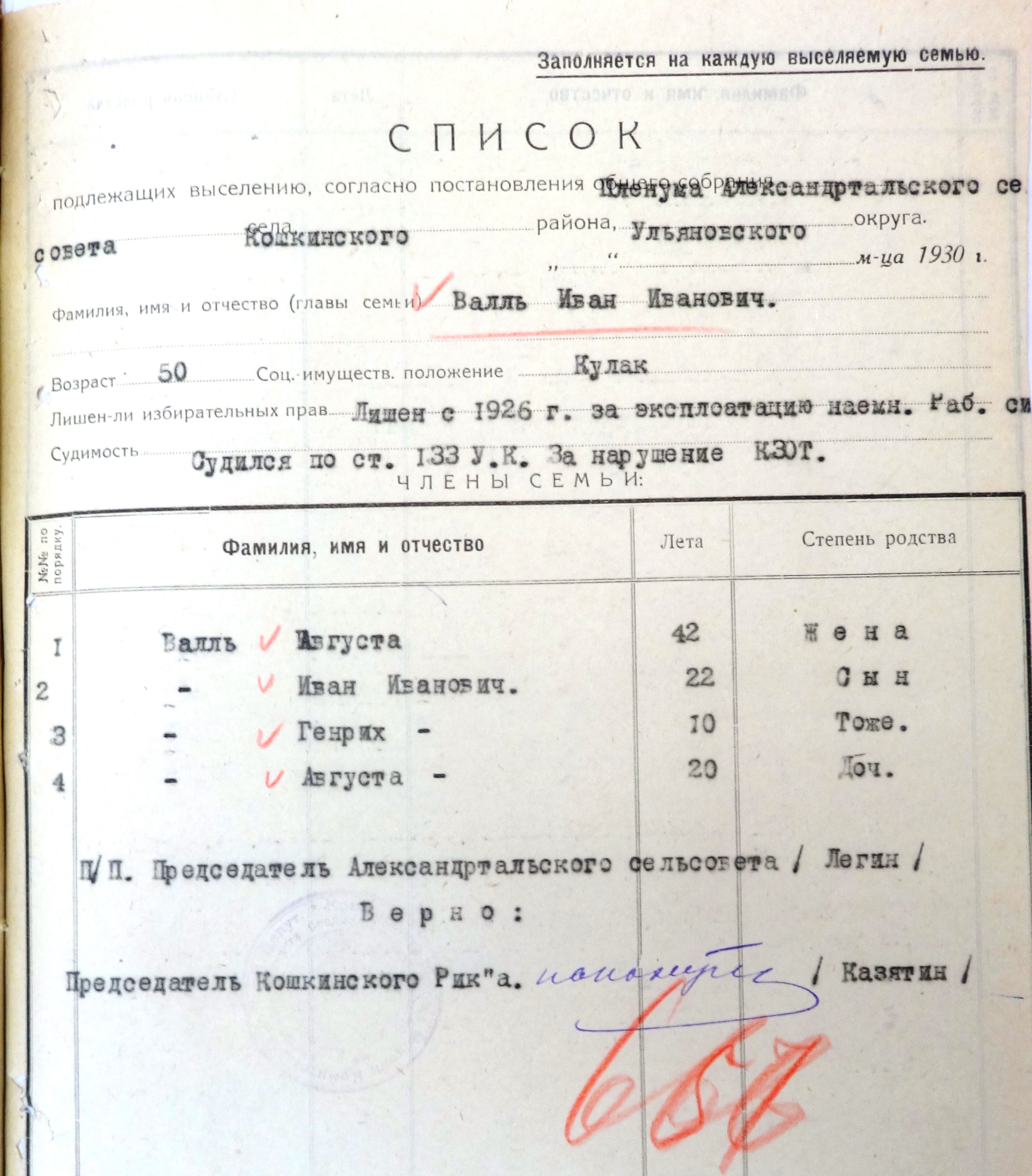 Список 1930 Валь Иван
