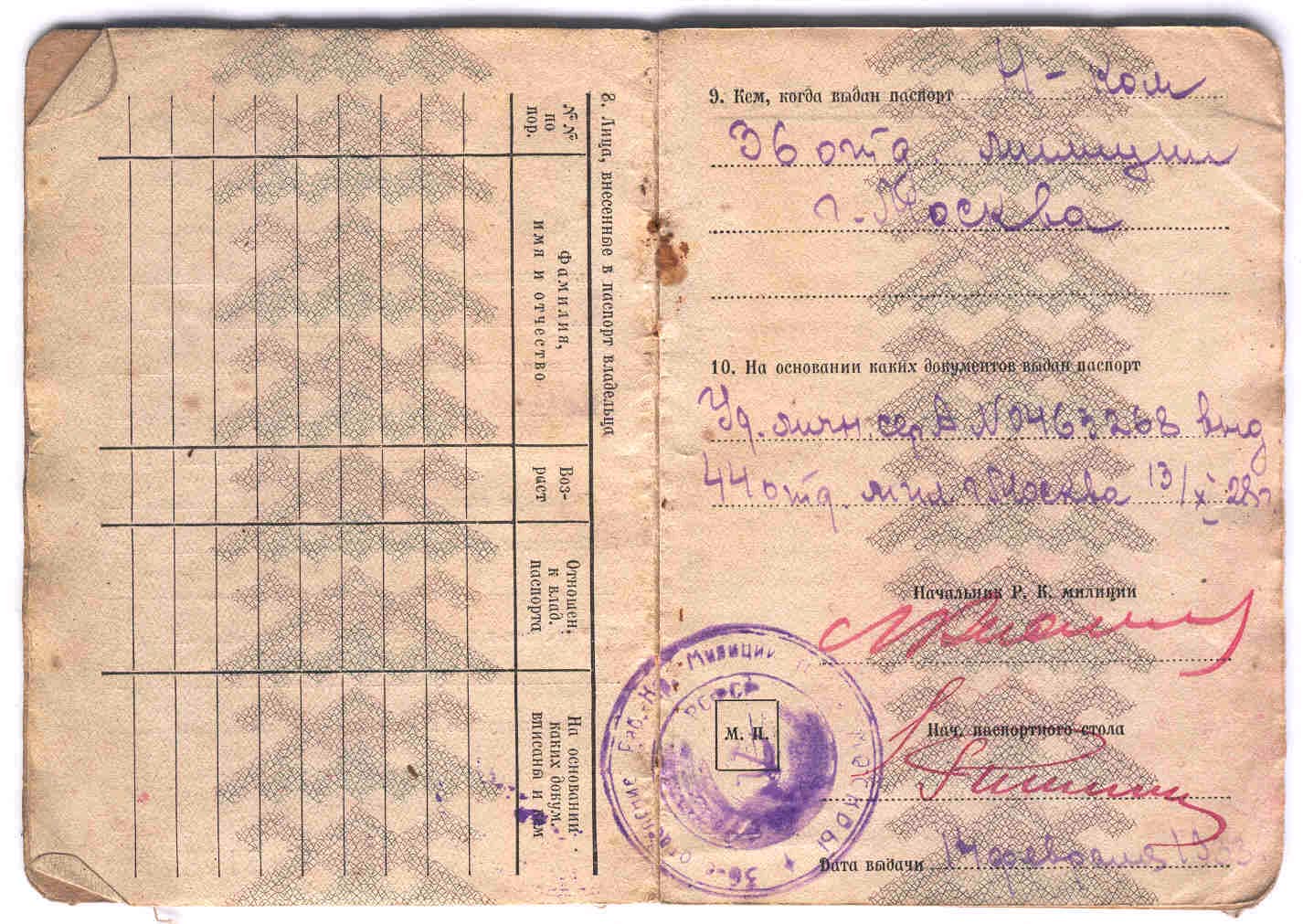 Паспорт Дмитрия Егоровича Наумова (вторая страница)