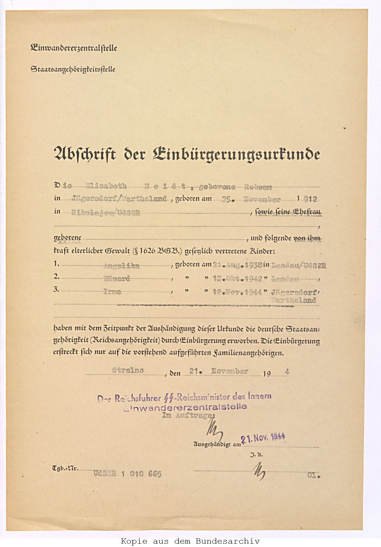 Файл:006 Abschrift der Einbürgerungsurkunde Elisabeth Heidt geb. Rebsam.jpg