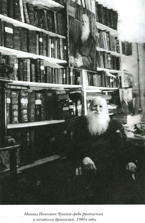 Файл:М.И.Чуванов среди рукописных и печатных древностей.1980-е годы.jpg