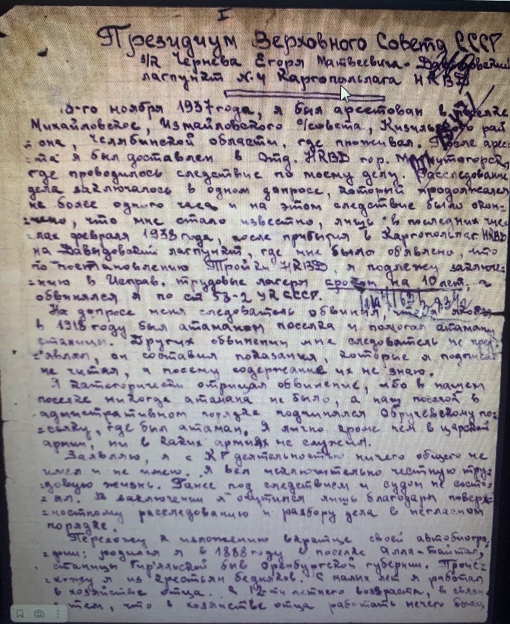 Письмо в Президиум Верховного Совета